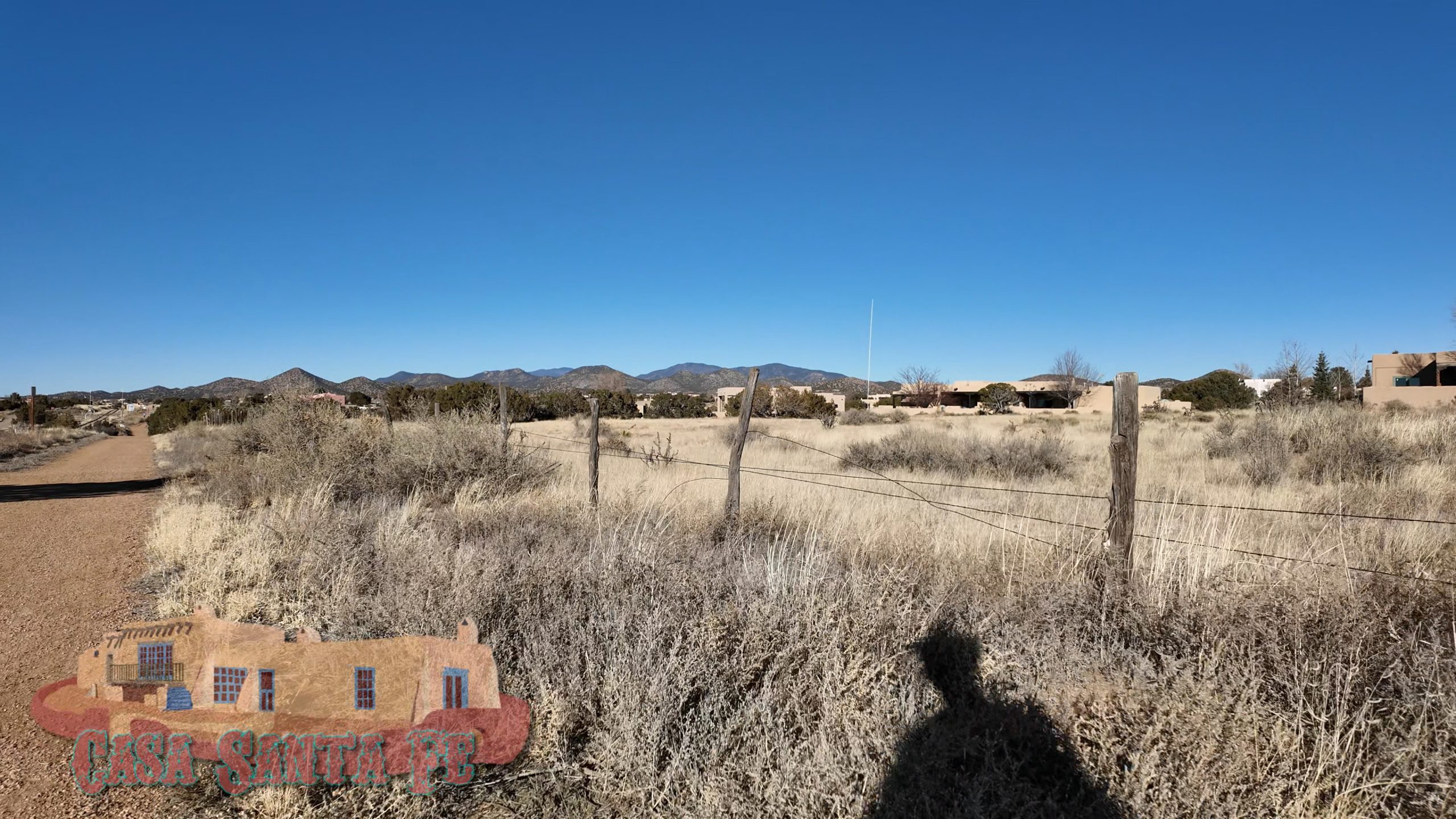 Off to the southwest, the rolling shapes of the Cerrillos Hills rise gently, their old mining history written in the folds of the land. Beyond them sit the darker, more rugged shoulders of the Ortiz Mountains, a little more serious in their posture, like they’ve seen things and kept quiet about it.