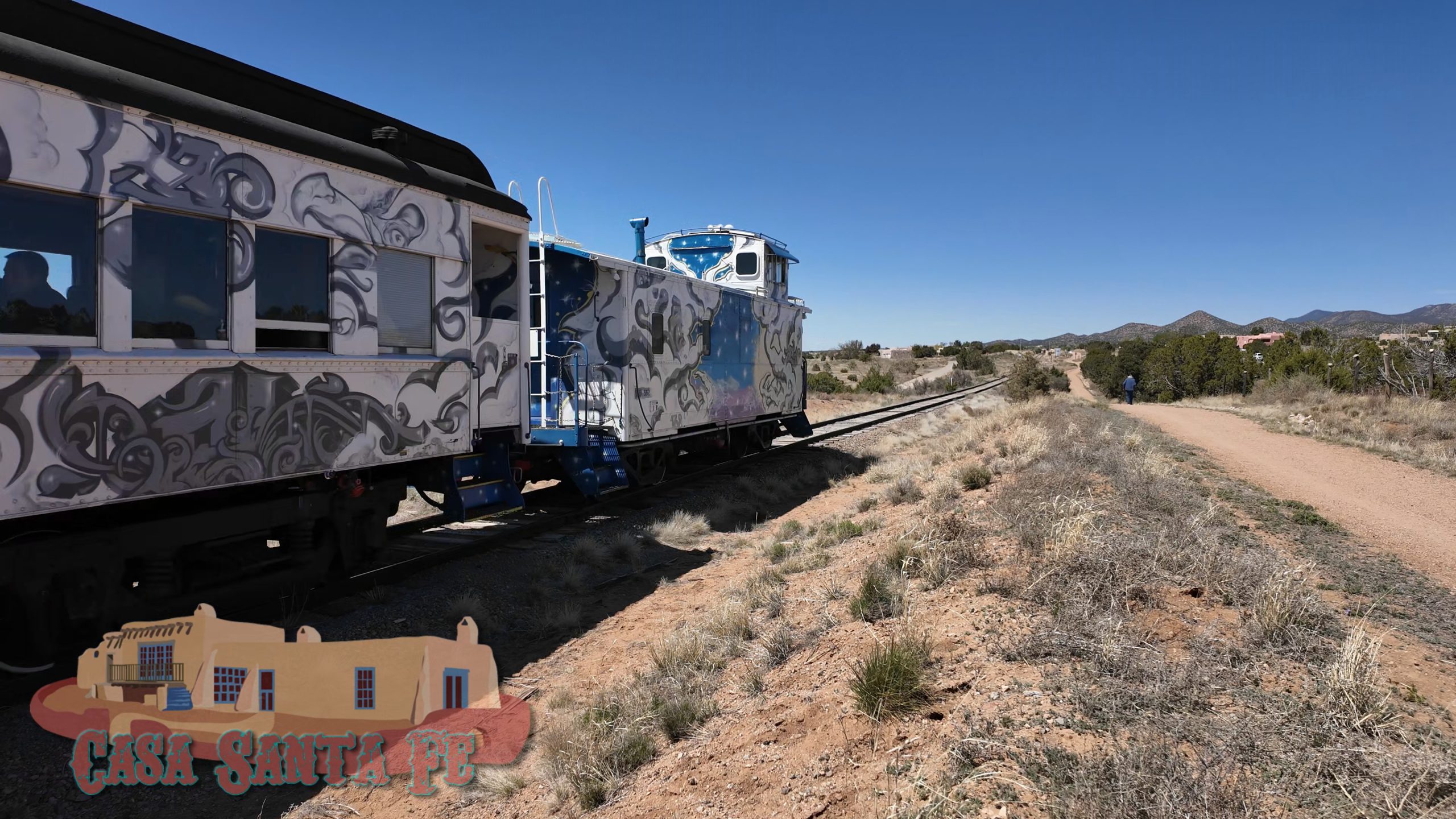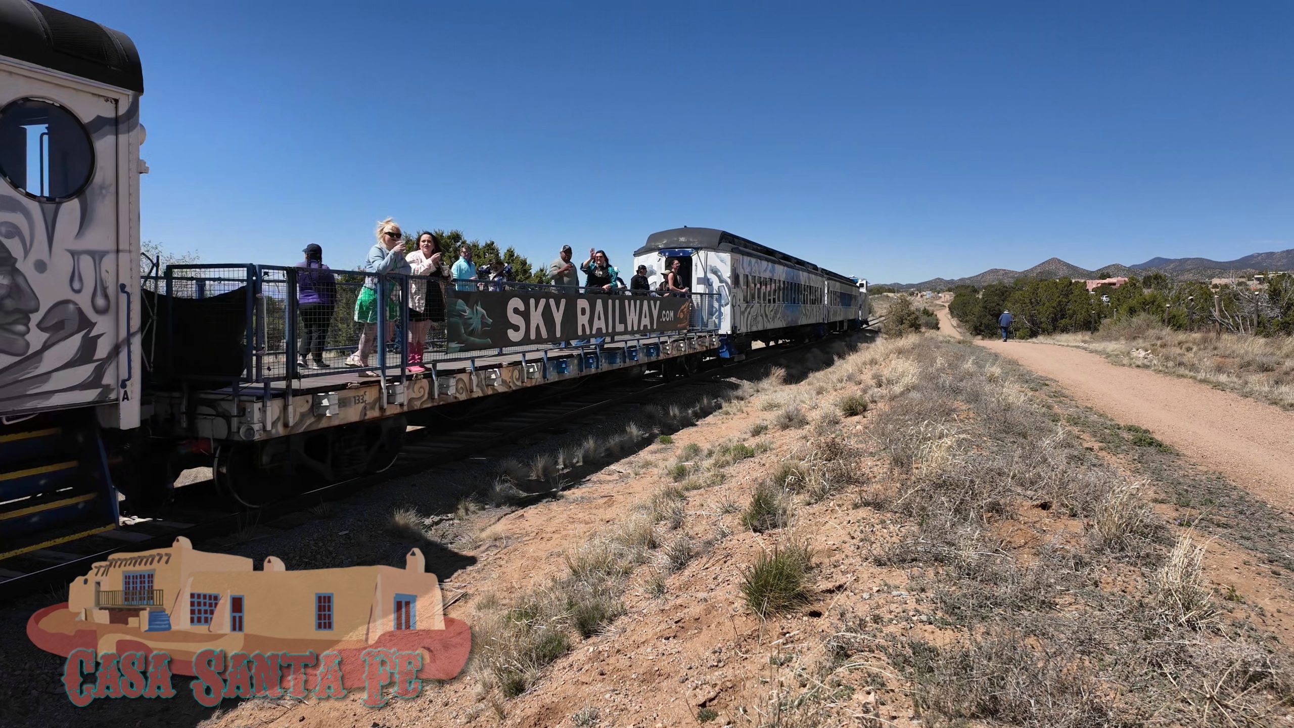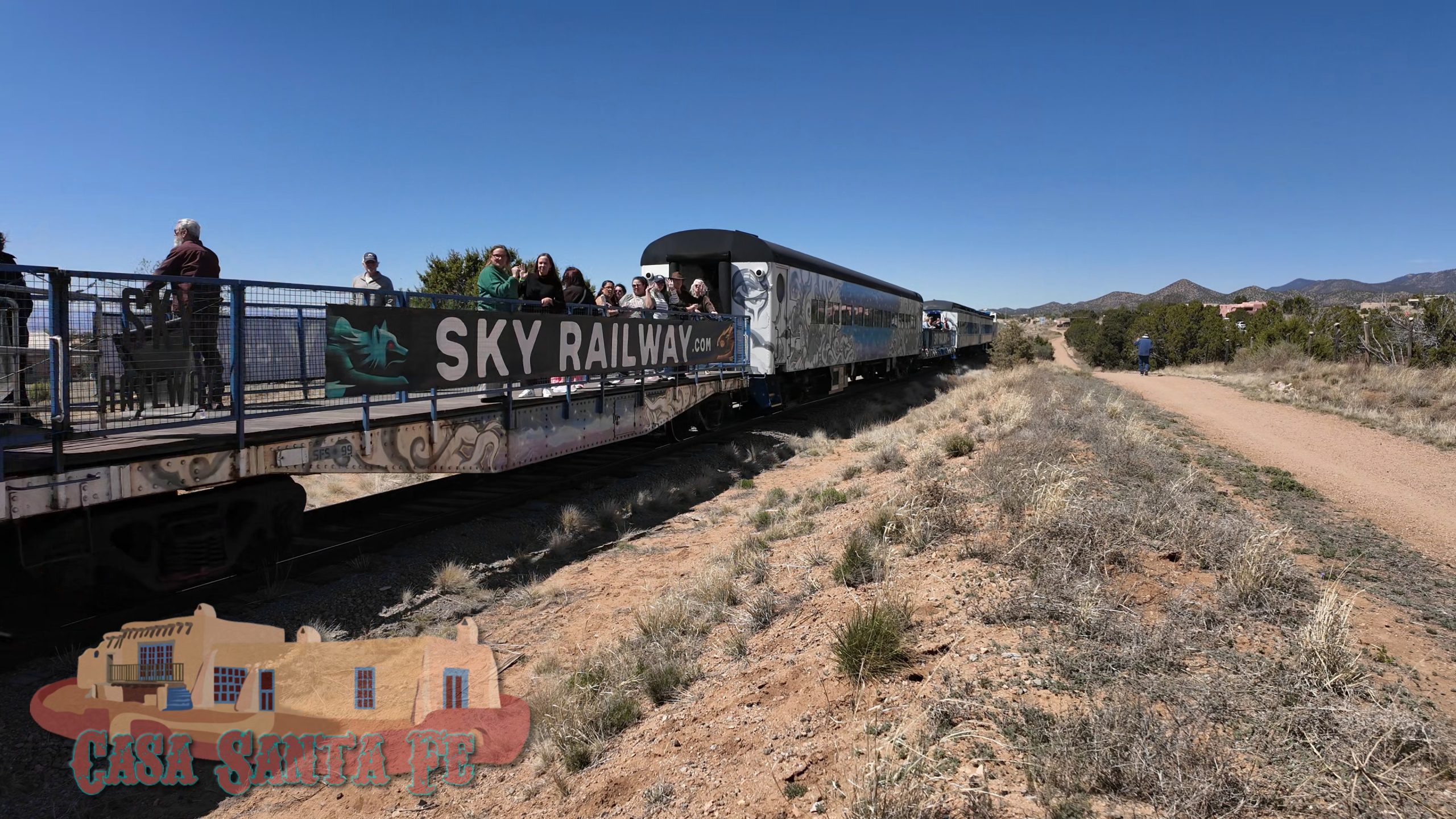 That would be the Sky Railway, running its route toward Lamy, hauling folks out for a taste of the high desert by rail.
