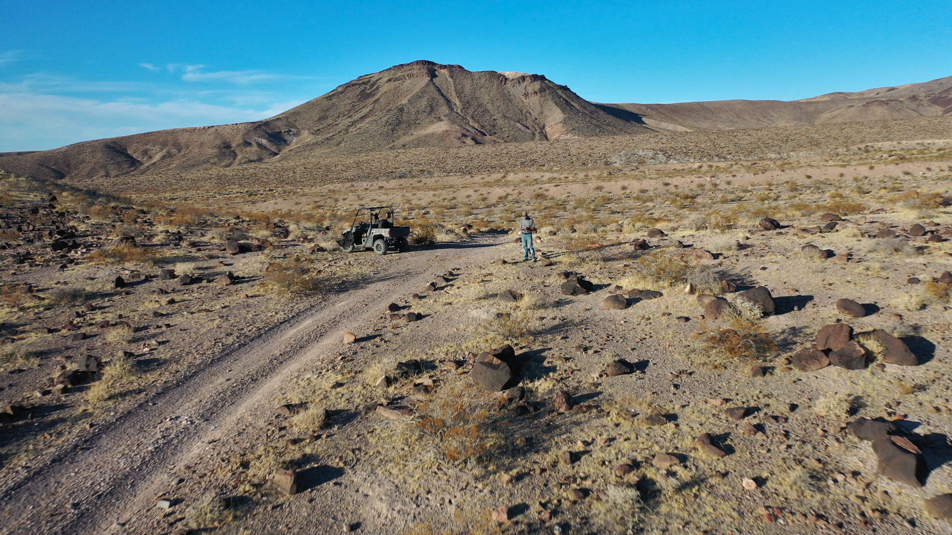 Yamaha Rhino Side-by-Side OHV on a trail to an old abandoned corral in the Black Mountains